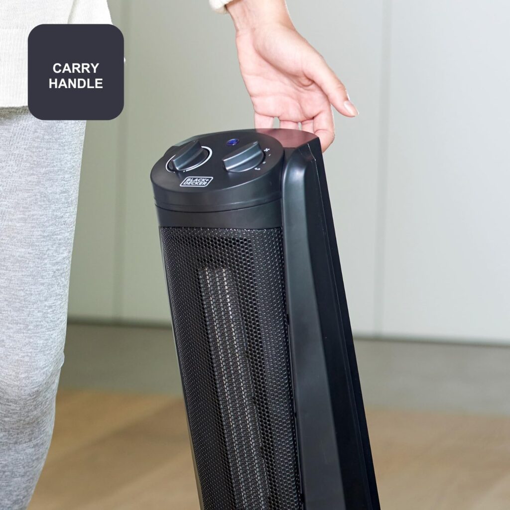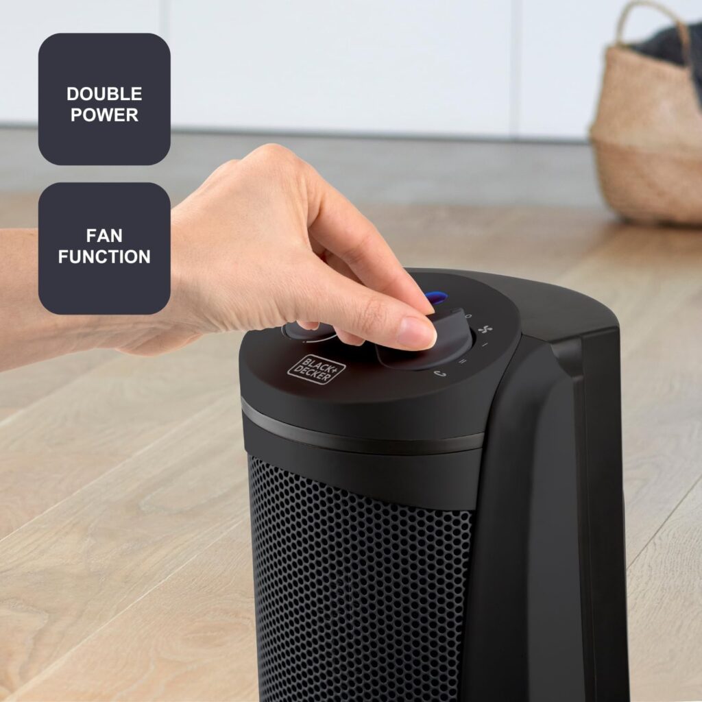 - 2 posiciones de calefacción y función ventilación: el calefactor cerámico de black + decker incluye 2 posiciones de calefacción, la primera de 1000w y la segunda de 2000w para que puedas seleccionar una u otra según la temperatura de la sala; incluye también función ventilación que generará movimiento de aire sin calentarlo